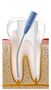 菌に侵された神経や血管を取り除き、その後、リーマー・ファイルなどの専用の器具にて形態を整えます。根管は人によって形が異なり、湾曲していることも多いため、細心の注意が必要です。