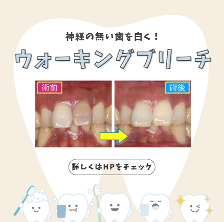 神経が無いまたは、神経が死んでしまった歯を白くする治療のひとつとして「ウォーキングブリーチ」という治療があります。